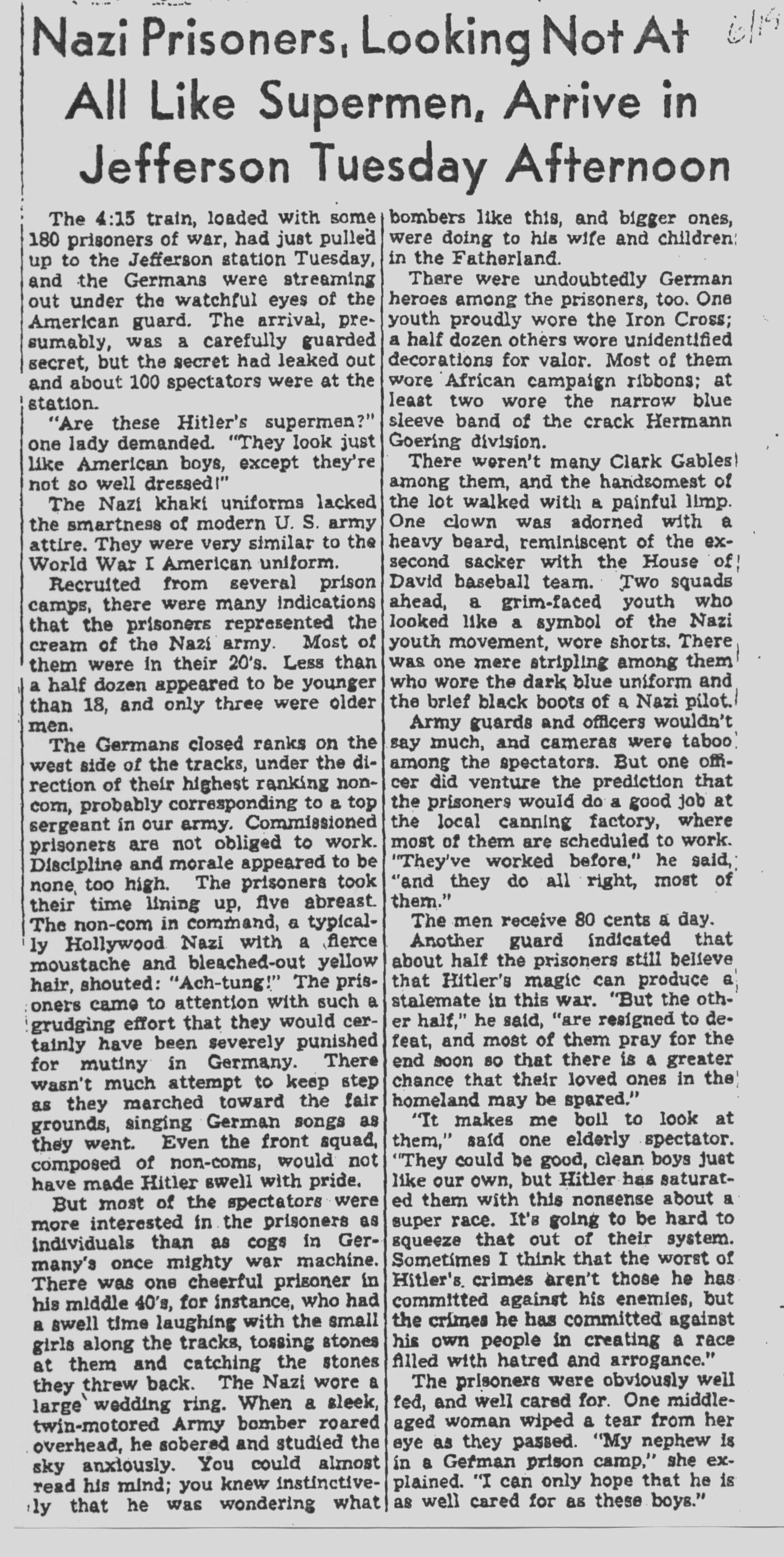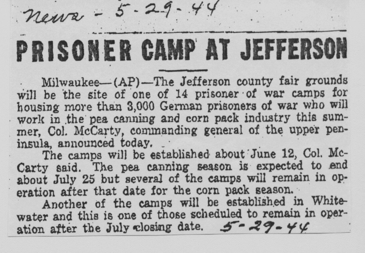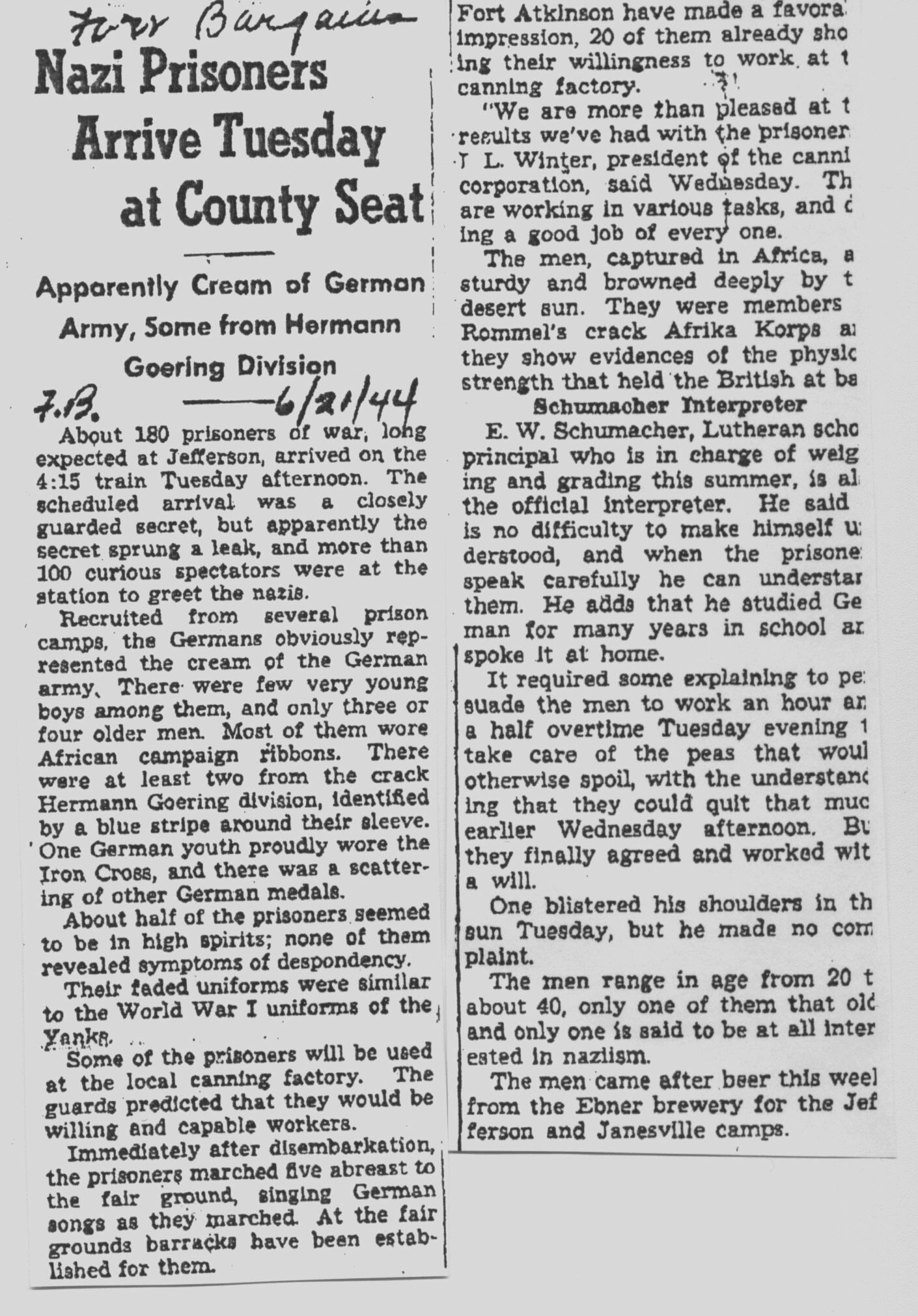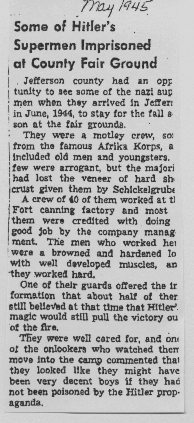 | *Note: Clippings are rather difficult to read. Many were yellow and fragile and came from veteran's scrapbooks. It is sometimes difficult to tell which local newspaper the clipping is from. Special thanks to Mary Ann Gleisner from the Jefferson Historical Society as well as Karen O'Connor from the Hoard Historical Museum in Fort Atkinson for providing background information. Back issues of the Jefferson Banner are available at the Jefferson Public Library. |