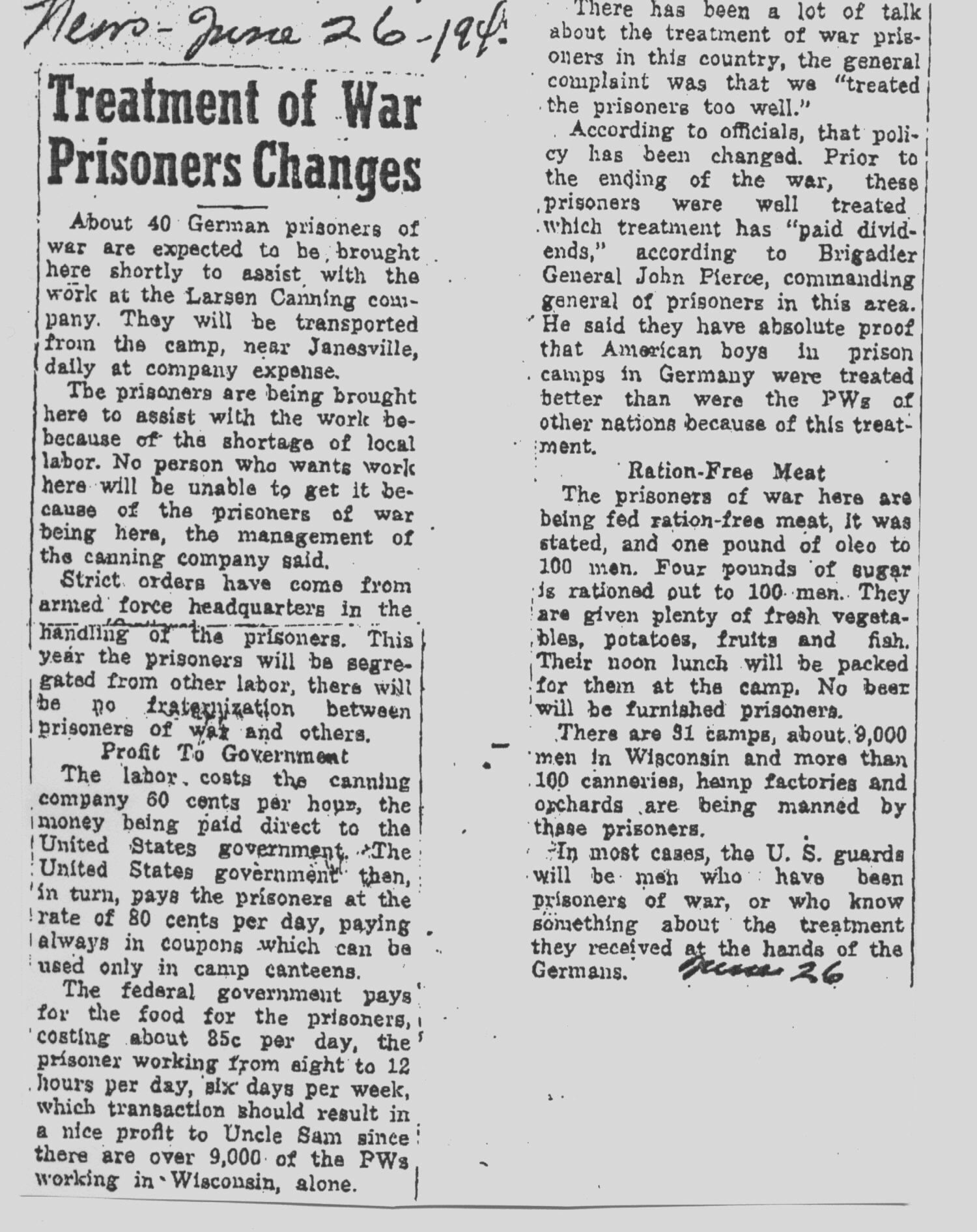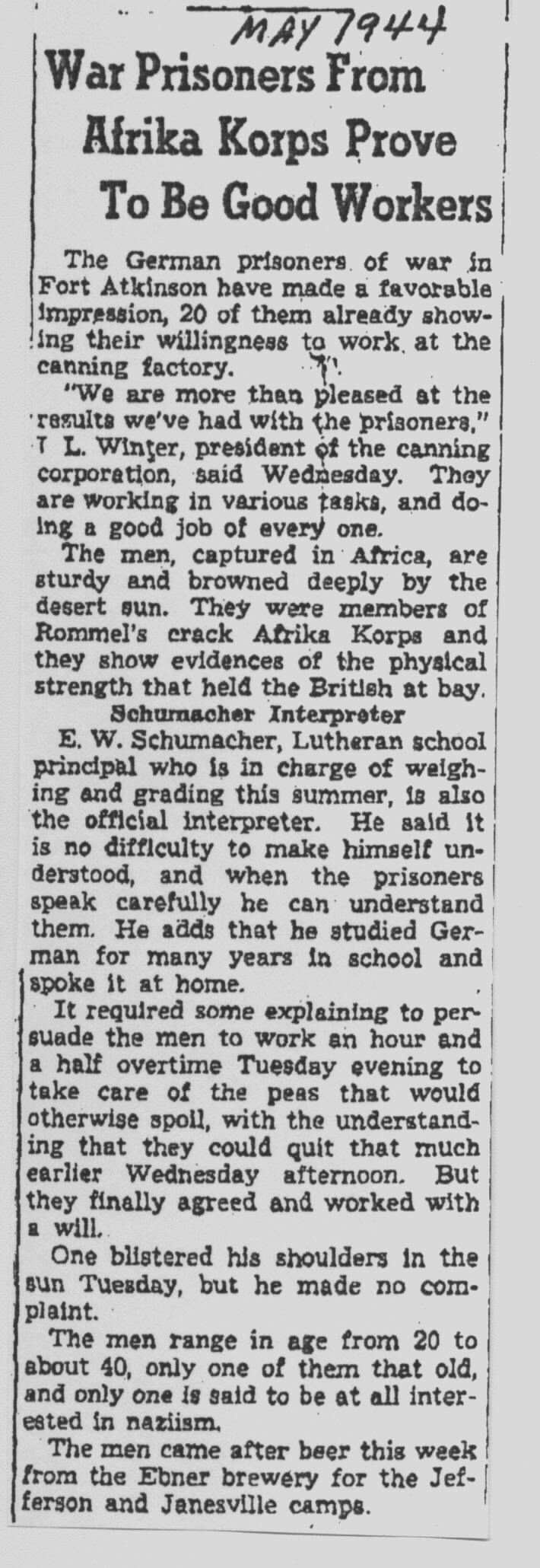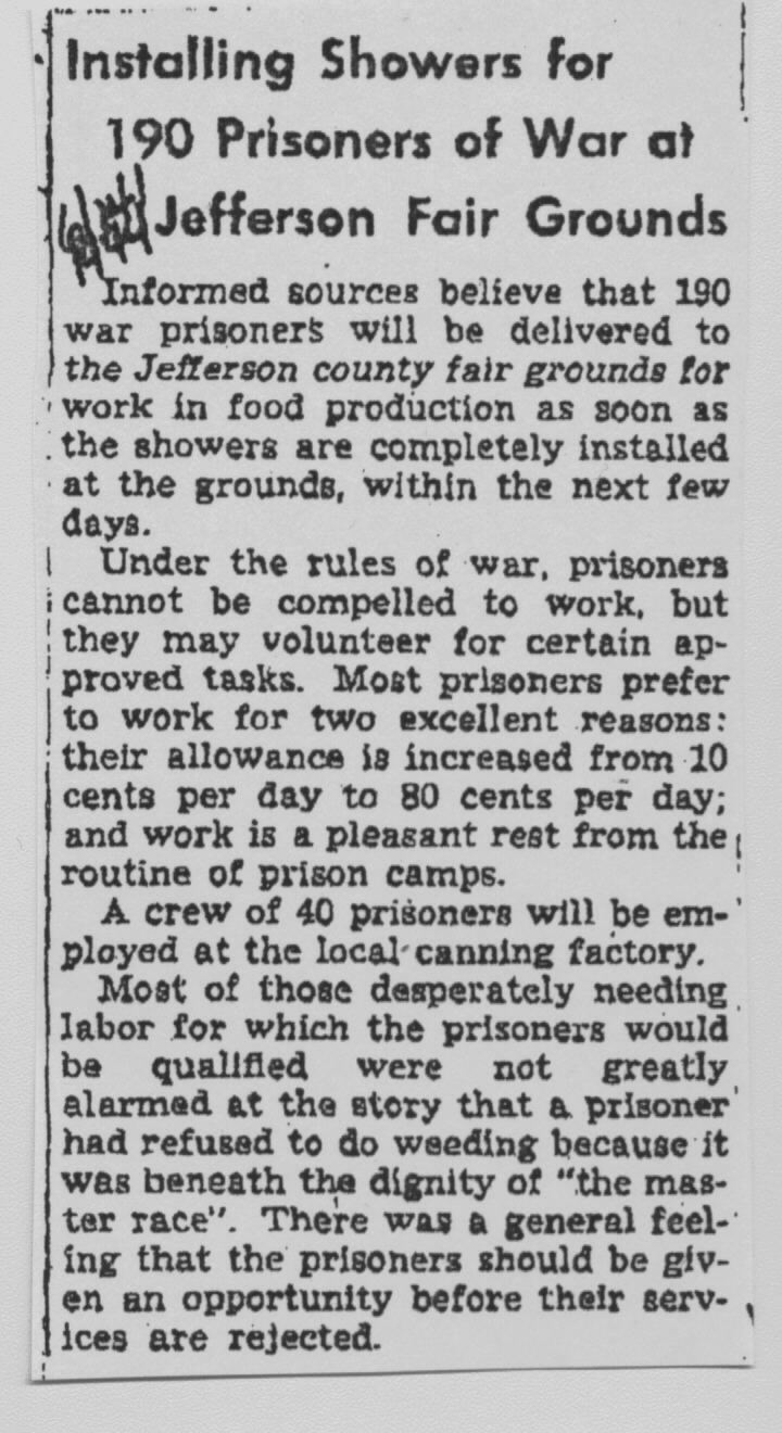 | *Note: Clippings are rather difficult to read. Many were yellow and fragile and came from veteran's scrapbooks. It is sometimes difficult to tell which local newspaper the clipping is from. Special thanks to Mary Ann Gleisner from the Jefferson Historical Society as well as Karen O'Connor from the Hoard Historical Museum in Fort Atkinson for providing background information. Back issues of the Jefferson Banner are available at the Jefferson Public Library. |